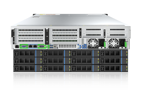 后置:12个3.5 /2.5” SAS/ SATA热插拔硬盘,选配支持4个 3.5” SAS/SATA 或4个 2.5” SAS/SATA/U.2硬盘